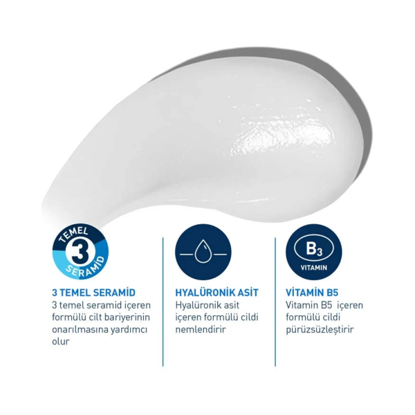 Üç temel seramid ve B5 vitamini kombinasyonu, cilt bariyerini destekleyerek dış etkenlere karşı korumaya katkıda bulunur ve nemin gün boyu tutulmasına yardımcı olur.
