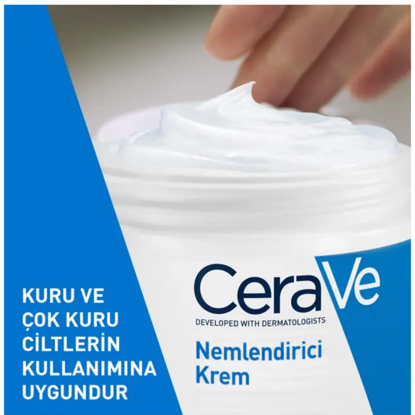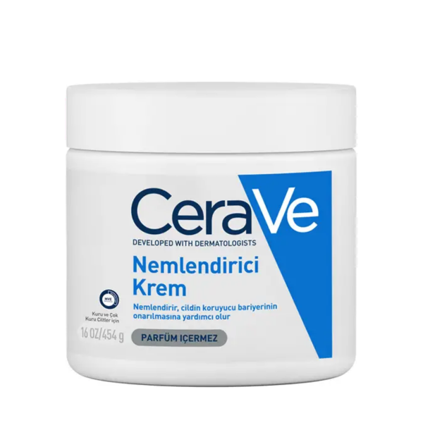 CeraVe Nemlendirici Krem, dermatologlarla* birlikte geliştirilen ve 3 temel seramid ile hyalüronik asit içeren formülüyle cildinizi yoğun şekilde nemlendirir ve koruyucu bariyerini destekler.