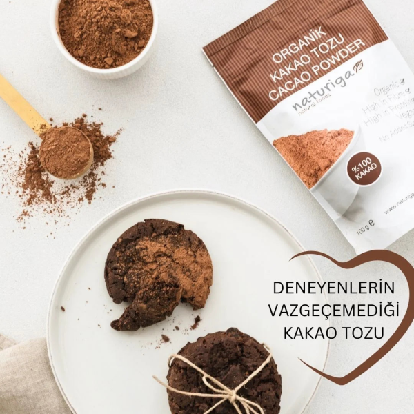 Naturiga Organik Kakao Tozu 100 g, organik tarım yöntemleriyle elde edilen kakao çekirdeklerinden üretilmiş, katkı maddesi içermeyen saf kakao tozudur. Yoğun kakao aroması ve doğal rengiyle hem tatlı hem de tuzlu tariflerde kullanılabilir. Günlük mutfak kullanımına uygun ince öğütülmüş yapısı sayesinde içeceklerden fırın tariflerine kadar geniş bir kullanım alanı sunar. Şeker, aroma veya renklendirici eklenmeden hazırlanmıştır ve doğal kakao tadını olduğu gibi yansıtır.
