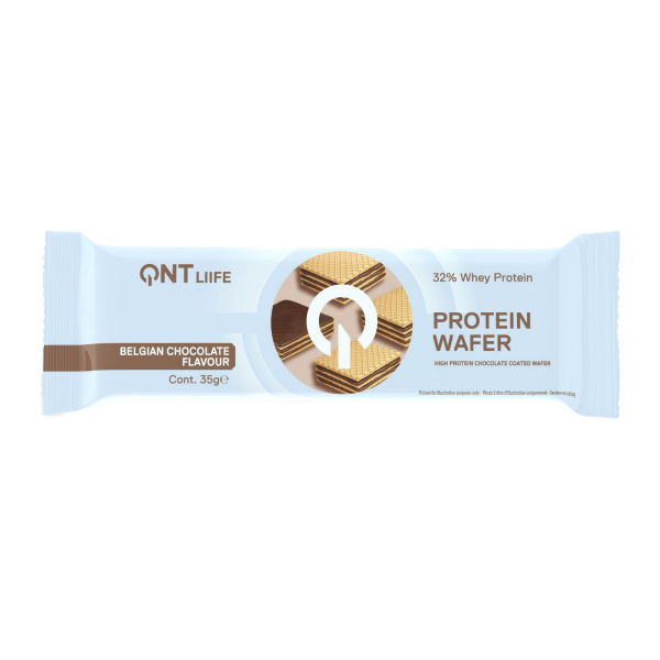 QNT Protein Wafer Protein Bar, Belçika çikolatası aromasıyla üretilmiş, protein içeren pratik bir atıştırmalıktır. Gofret formu sayesinde klasik protein barlara alternatif olarak çıtır bir doku sunar. Günlük beslenme rutininde ara öğünlerde veya antrenman sonrası tercih edilebilecek şekilde tasarlanmıştır.
