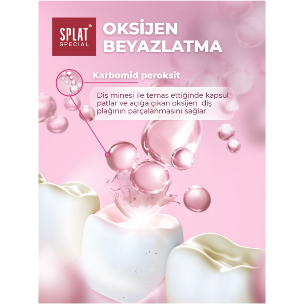 İçeriğinde bulunan karbamid peroksit mikro granülleri ve polidon teknolojisi, diş yüzeyindeki renklenmelerin giderilmesine yardımcı olurken aynı zamanda plak oluşumunun azaltılmasına destek olur. Papaya enzimi ve özel parlatıcı silika partikülleri ise diş minesine nazik şekilde etki ederek yüzey temizliğini destekler.